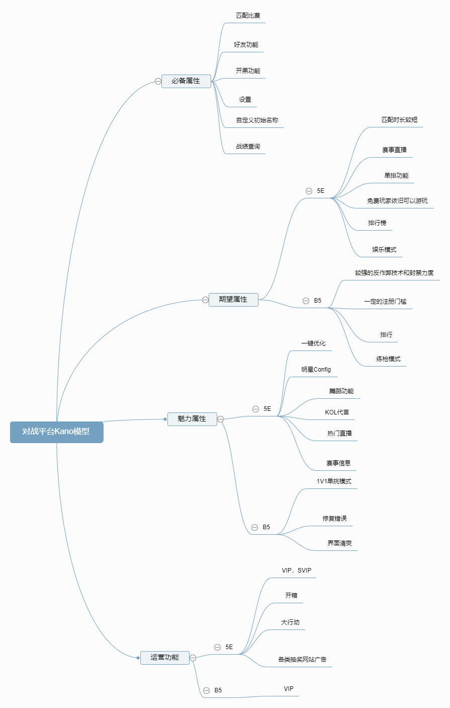 整理结构图可知:两大平台都具备匹配,开黑,好友,热身,战绩,排行等功能,同时5E功能相对更加全面,终身免费让很多新玩家乐于选择这个平台。而B5注册就有一定的游戏时长门槛,且不办VIP则无法开始排位比赛,特点在于功能简洁,为现有玩家创造了一个良好的竞技环境。