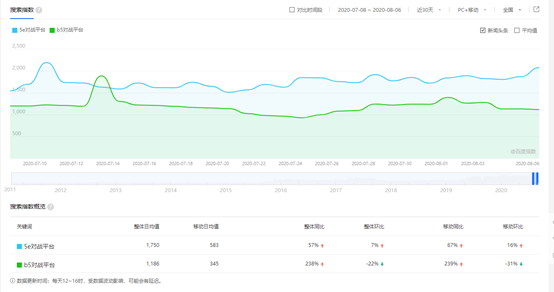 从百度指数来看5E的热度一直都比B5高,从玩家账号数量上来看,据百度贴吧统计,5E现已有超过170万账号,而B5只有50万。