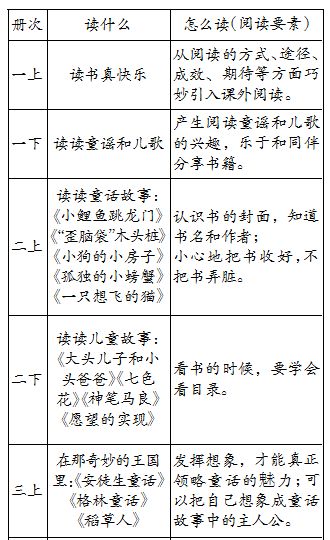 “快乐读书吧”的编排内容有哪些?我们先来看1~3年级每一册教材“快乐读书吧”栏目安排的内容及阅读要素:
