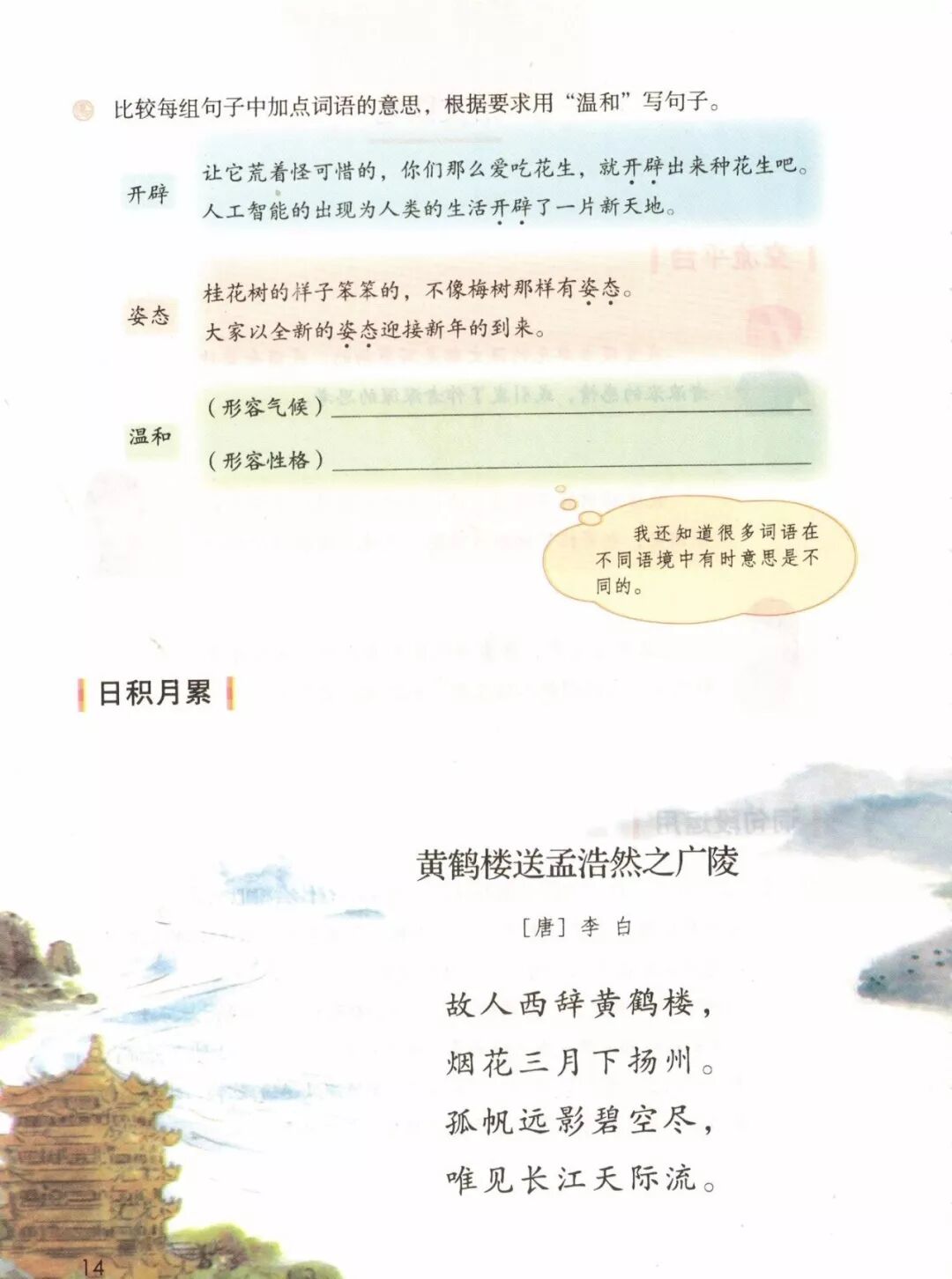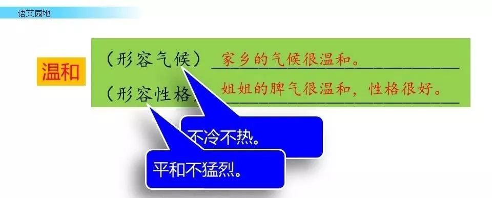 1、比较每组句子中加点词语的意思,根据要求用“温和”写句子。