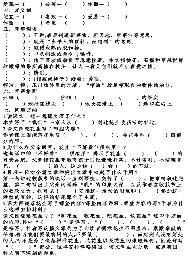4、文章把花生和( )作比较,这样作比较的用意是:( )