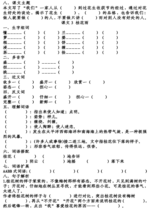 2、全文按事情发展的顺序写了种花生、收花生、吃花生、议花生。其中,议花生是课文的重点部分,作者通过花生的特点,赞美了默默奉献、不图虚名的品格。