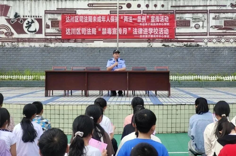 在达州市达川区堡子镇高坪中心学校,达川区司法局开展了集未成年人保护、禁毒宣传教育于一体的法治宣讲活动。司法局宣讲员通过鲜活生动的案例,普及禁毒知识,讲解了毒品的危害、毒品种类以及诱人吸毒的常见陷阱,并结合青少年实际教授大家如何抵制和预防毒品,让同学们掌握拒毒防毒的方法和技巧。活动中,宣讲员还从法律层面详细解读剖析了校园霸凌和未成年参与直播打赏等热点问题,呼吁学生自觉抵制不良行为,加强品德修养,增强法治观念,提高维权意识。