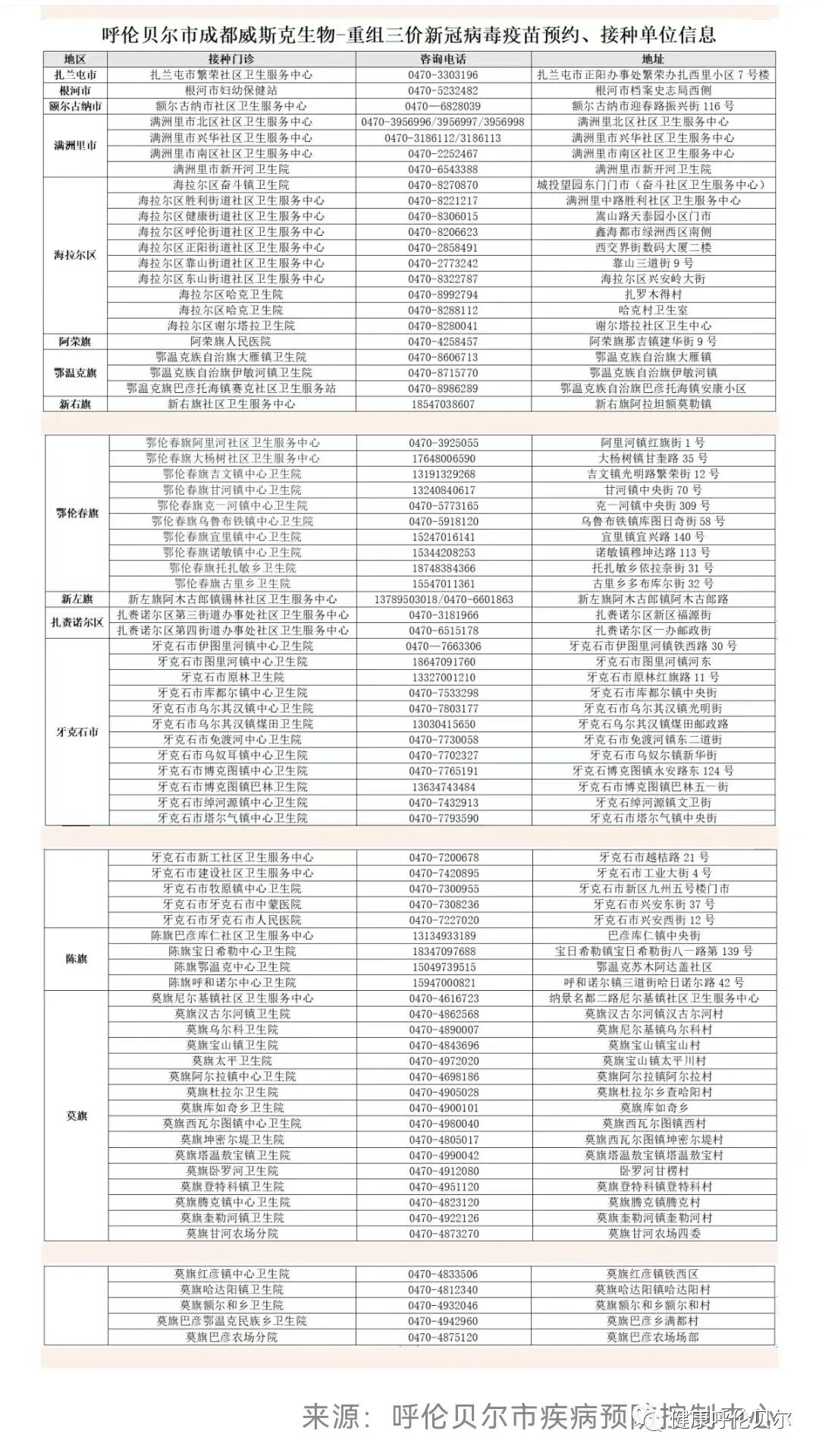 含XBB变异株抗原成分疫苗立时要来了,到哪预约看这里↓呼伦贝尔市域内能够接种成都威斯克生物—重组三价新冠病毒疫苗的门诊预约及咨询德律公示: