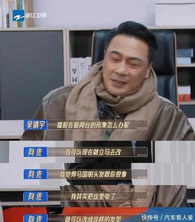 ?????? 吴镇宇其实知道向佐的形象根本不像新闻主播因为不端正一般新闻主播形象要很好但向佐不知道自己长什么样吗可能吴镇宇和向佐父母很熟不好直接拒绝所以他还是不死心要变换发型。