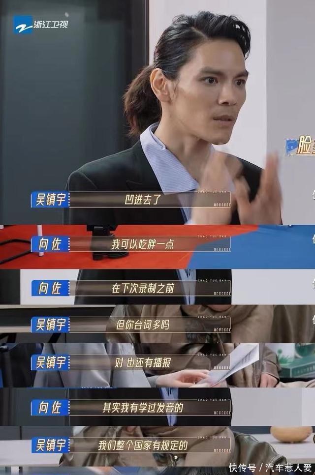 ?????? 吴镇宇说向佐太瘦了眼睛都凹进去了他说自己会吃胖一点几天能吃胖多少他完全就是不自量力胡说八道。而且台词很多有节目播报他还说自己学过发音吴镇宇怼他是发型为什么他不为角色剪掉自己的长发呢