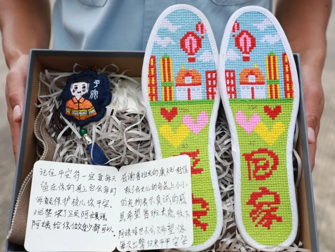 “我绣的平安鞋垫,希望你们穿上后,