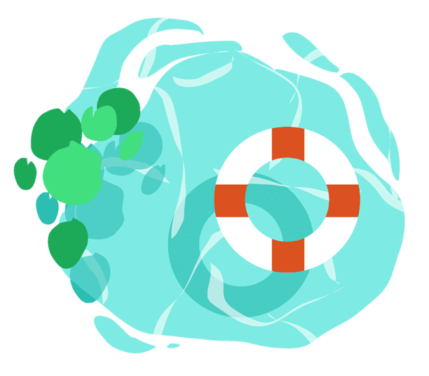 2. 抛: 可将游泳圈、木板、树枝等漂浮物抛向落水者,让其攀扶,在能力允许的情况下拖至岸边。切记,拖拽过程中,需伏地降低中心,以免被拉入水中。