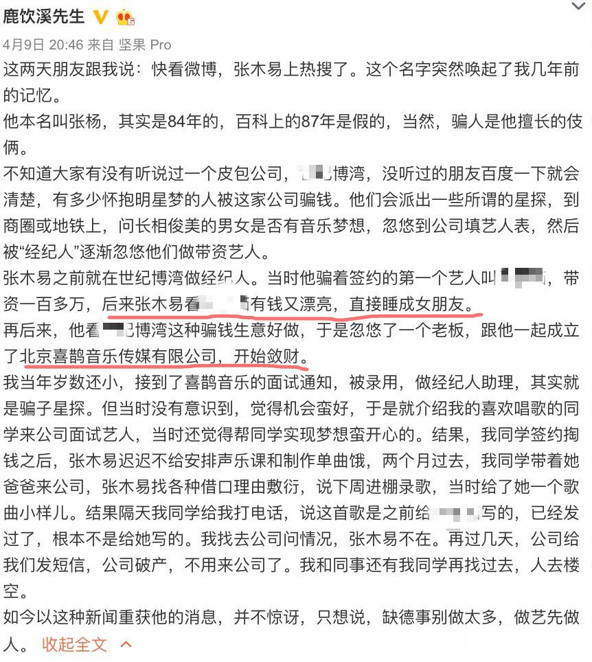怎么说呢,能在一个骗子公司工作这么久,还被知情人直接点名举报,张木易这人的底子,真干净不到哪儿去吧。