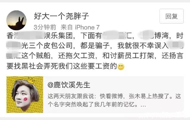 其实,早在两人微博被禁言之前,就有网友出面爆料称张木易曾在一家骗子公司上班。
