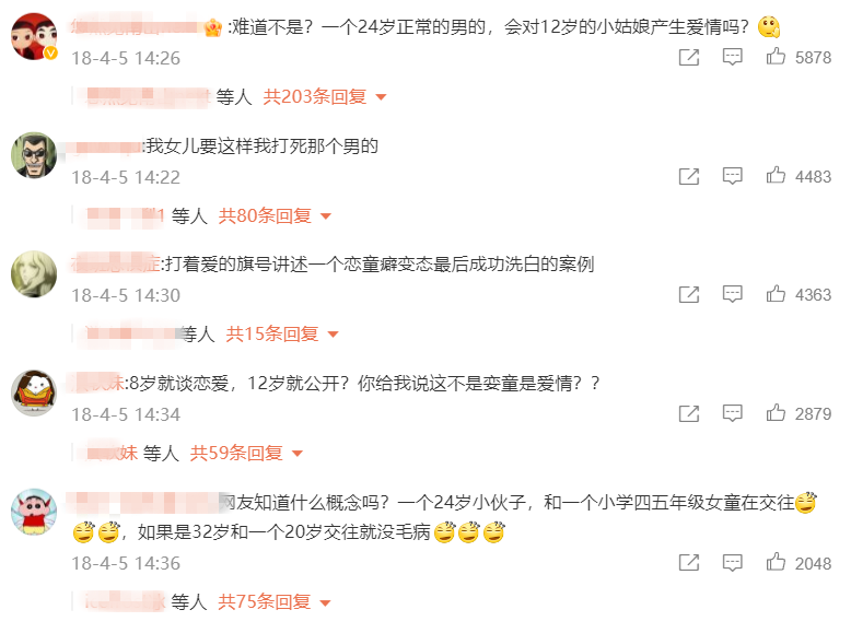 她们不仅没有意识到这是严重的“恋童”行径,甚至还各种送祝福,对于各种质疑声更是充耳不闻。