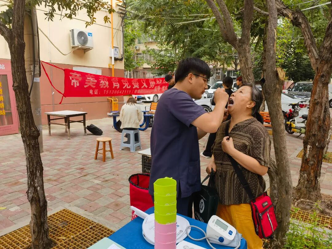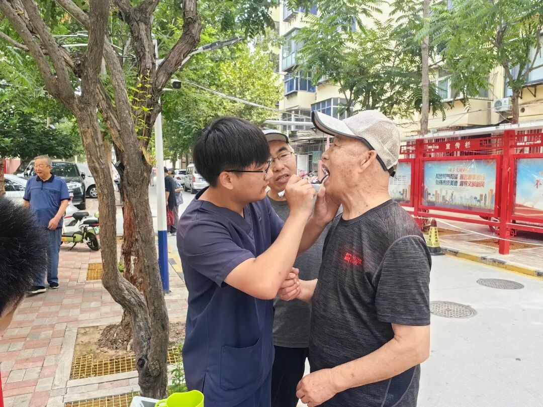 冀城口腔现场为白叟供应测血压、口腔搜检、健康咨询等办事,并向白叟们普及口腔护理的相关医学常识。