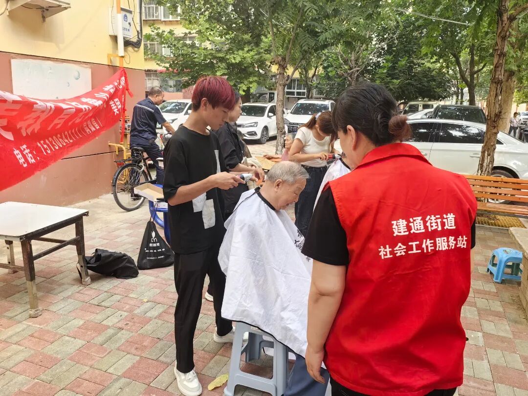 低龄助高龄自愿办事队—青南支队邀请社区中的茕居、空巢白叟介入剃头办事, 茕居白叟田大爷对本身新剪的发型很写意,愉快地说:“理了利索的短发,感受整小我都精神了,感谢自愿者和社工站。”