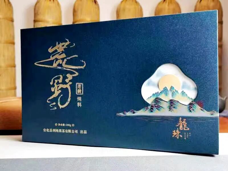 原料来自安化黑茶核心产区茶马古道洞市片区,选用高山荒野老树为原料,采用古法工艺手工揉制,保证了条索的完整性——茶不碎,原料品质好,才能揉制成形,造就完整的龙珠。口感特点,生津回甘好。