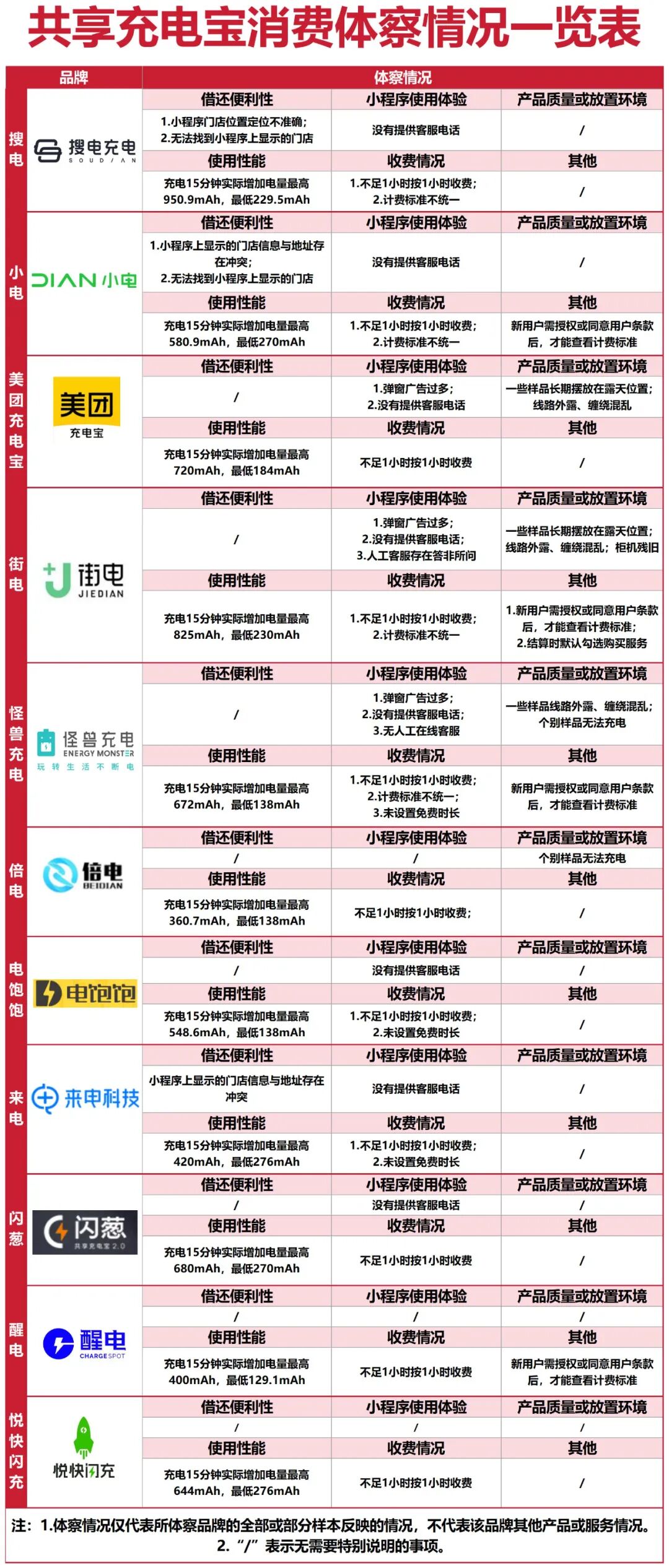 涉及品牌:“街电”“怪兽充电”“闪葱”“电饱饱”等