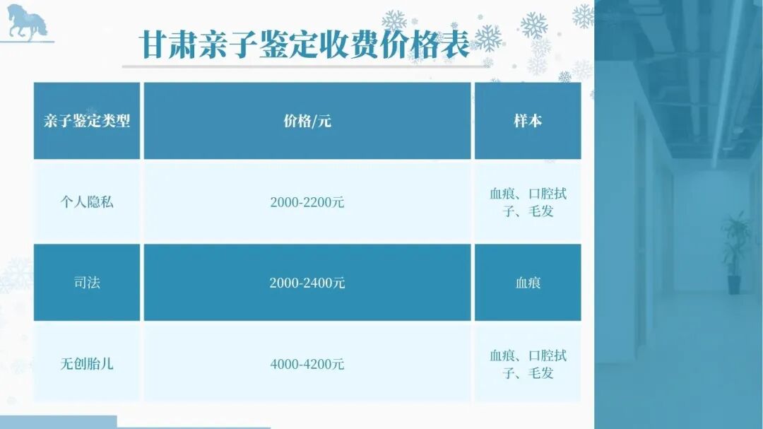3、武威无创胎儿亲子鉴定属于隐私类别的亲子鉴定,无需提供身份证明进行鉴定。具有司法效益的无创胎儿亲子鉴定结果仅供参考,不能作为司法目的使用。评估费用约为4000-4200元。