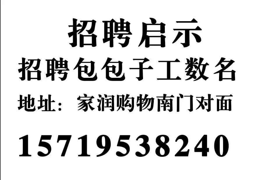 2.帮厨数名,要求女性,50岁以下年龄,身体健康,对工作有责任心,有经验优先