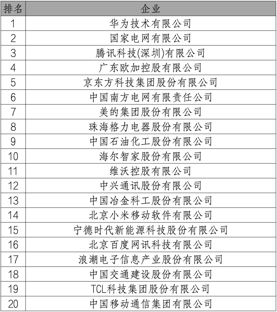 从综合实力来看,华为、国家电网、腾讯、广东欧加、京东方、南方电网、美的集团、珠海格力、中国石化、海尔智家等实力较为突出。