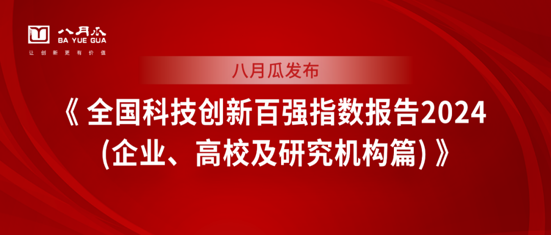 5月30日,八月瓜科技发布《全国科技创新百强指数报告2024》(以下简称《报告》),以专利信息为核心指标,依托“创新大脑”1.88亿条全球专利数据、知识产权数据、科技文献数据、企业信息数据等各类数据10亿余条,全面评估企业、高校、研究机构三大创新主体的科技创新实力和活跃度,构建起由“企业科技创新指数”“高校科技创新指数”和“研究机构科技创新指数”组成的评价指标体系,并遴选出全国科技创新企业500强、高校50强、研究机构50强。
