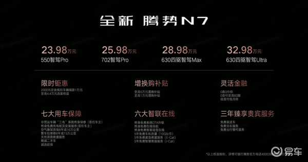 全新腾势N7带来的权益福利也足够有吸引力,比如即刻下定可享定金2000元抵扣车辆尾款10000元上市权益、置换补贴至高50000元等。现在喵哥就带大家看看全新腾势N7是否值得购买,以及应该选择哪款。