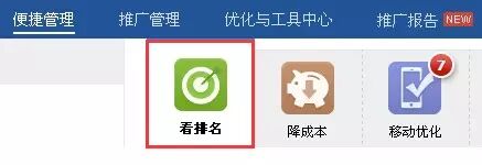 6.使用看排名工具:在凤巢账户里面推广管理旁边有个便捷管理-看排名工具,可以查看PC和移动端的部分重点词的排名情况(比较接近实时排名)。但最多只能关注150个重点词,局限性比较大,排名更新频率也没那么快。
