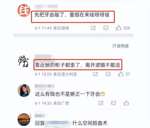 关于黄老师牙齿的问题,网友的建议也是相当炸裂,直接要求“她先去把牙齿敲了,重组之后再来‘挖呀挖’”。黄老师火的因素有一项是颜值,如果后续要继续公开露面当网红的话,样貌难免会被评头论足,只能说走红真的是一把双刃剑。