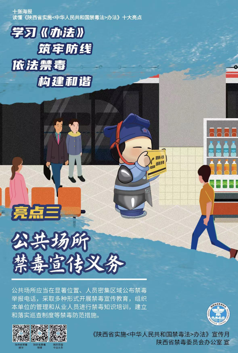 为切实做好《陕西省实施<中华人民共和国禁毒法>办法》(以下简称《办法》)的贯彻实施工作,进一步提高社会各界对《办法》的知晓率,让《办法》的基本内容和精神实质家喻户晓,真正使“健康人生 绿色无毒”的理念深入人心,省禁毒办按照全省禁毒宣传月部署要求,围绕《办法》重点内容,制作推出了“秦小尉”系列禁毒专题慕课、3D动漫、MG微视频、漫画海报及宣传册等文创产品。