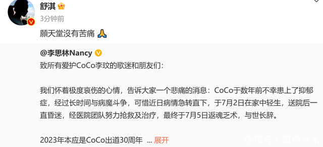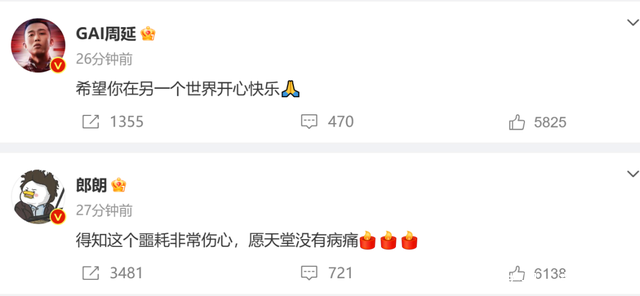 舒淇、张艺兴、刘雅瑟、郎朗、张大大、GAI、小鬼等也一一发文悼念。