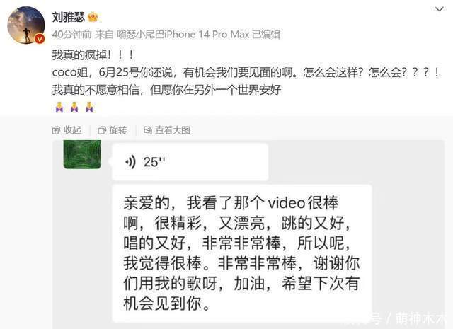 整段音频时长不长,前半段中文说话语气很缓慢,中间还卡顿了两次,到结尾的英语部分语气又欢快了起来,看起来状况不错。后援会还在评论区透露音频就是最近的,而她也一再强调让粉丝注意身体健康,更让人难以想象她在音频发布当日就走向了绝地。