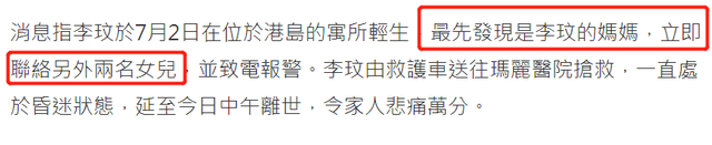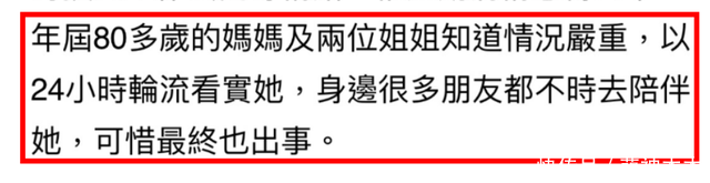 据知情人透露,李玟病况严重到需要24小时轮流看守,除了妈妈和姐姐看顾外,身边好友也时不时去陪伴,但可惜最终还是出事了。而她倒地昏迷也是85岁的妈妈最先发现,随即报警求助送医救治。