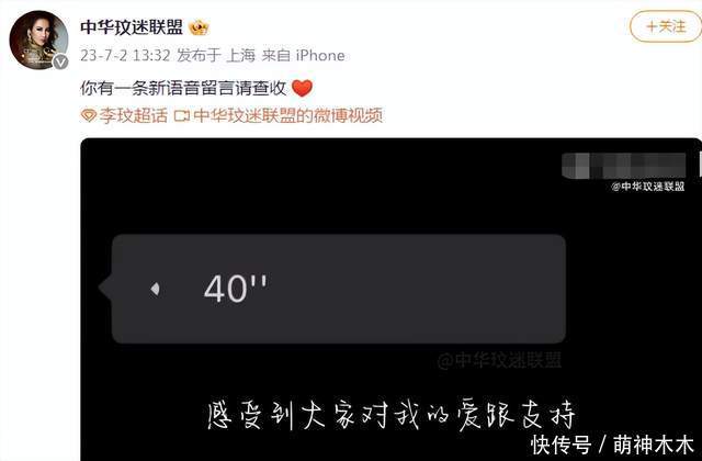 李玟后援会在7月2日发布了一条语音留言视频。视频中,李玟称感受到了大家的爱与支持,有粉丝在身后做后盾,自己也会好好加油,也希望粉丝们这段时间身体健康快乐,表示自己会好好努力,也一直想念大家。