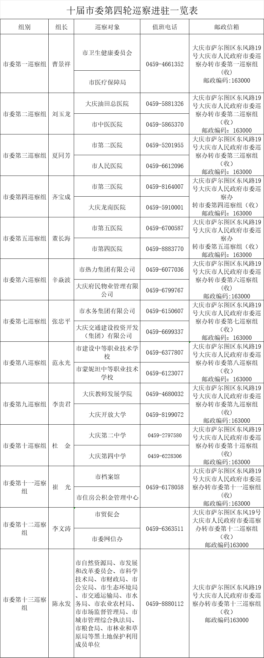 十届市委第四轮巡察的13个巡察组