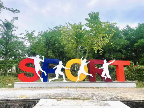 上午,记者来到该公园,入口处是一块镌刻着“王文教体育文化公园”9个大字的巨石。巨石旁的宣传栏记载着王文教的简介、羽球报国故事、所获荣誉、返乡拜谒先祖等内容。公园左右两侧均有休闲长廊,左侧的玻璃长廊挂着“谁羽争锋”“生命在于运动,我运动我健康”等宣传画。此时,两条长廊里有25名学生在认真地写生。玻璃长廊旁一个巨型羽毛球拍雕塑引人注目,公园里还有羽毛球运动员石雕等运动元素。