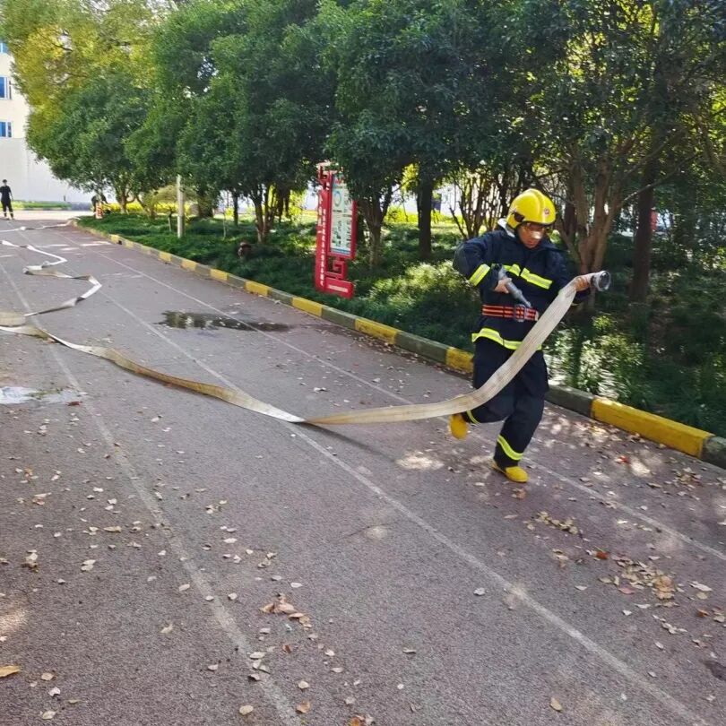 在指战员同志的指导下,高境所民警重点对着消防服使用灭火器和消防水带灭火进行训练,参训民警严格要求自身,听从指挥,操作规范,确保关键时刻拿得出,用得上。