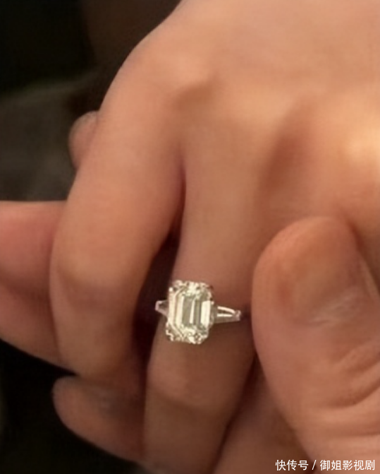 下边那只手,是汪小菲的,他轻柔地捏着马筱梅的手指,像在抚弄一朵鲜花。而上面那只手,是马筱梅的。她的中指上,已经套上了一枚大大的长方形方钻戒指。