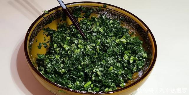 ?????? 首先、买回来的茼蒿要摘掉老叶,然后要放在淡盐水中浸泡一下,目的是消毒杀菌,这样吃着才放心。接着控干水分,把茼蒿切细,越细越好。