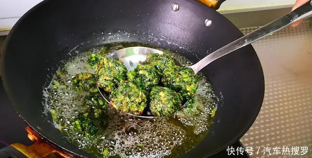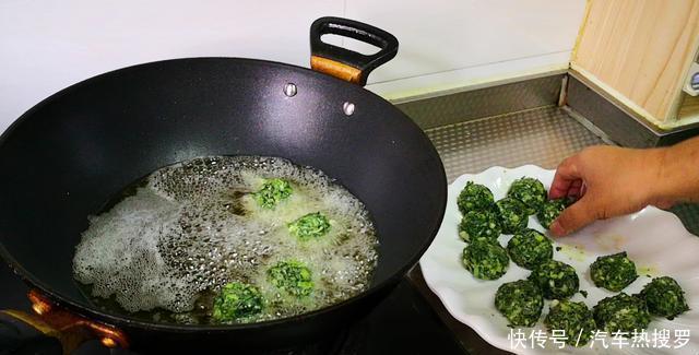 ?????? 最后、调好的面粉揉成面团,接着揪下菜团团成大小均匀的丸子;起锅加油,油温五成热时下入丸子,待丸子定型后再调成小火慢慢炸,这样炸丸子才外酥里嫩,还不容易糊。丸子定型后要不断地翻动,目的是受热均匀,丸子炸至表面金黄,全都漂浮起来时,丸子就熟了,这时就可以控油捞出了。