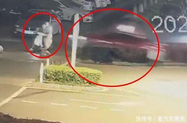 ?????? 随后,监控画面流出,可以清晰看到,半夜黄色的路灯灯光照射下,两辆电动车正在等待红绿灯,其中一辆白色电动车上,一名身穿咖啡色T恤的男子载着一名长发女子,忽然一辆红色电动车窜入画面,直接把这辆白色电动车撞飞!
