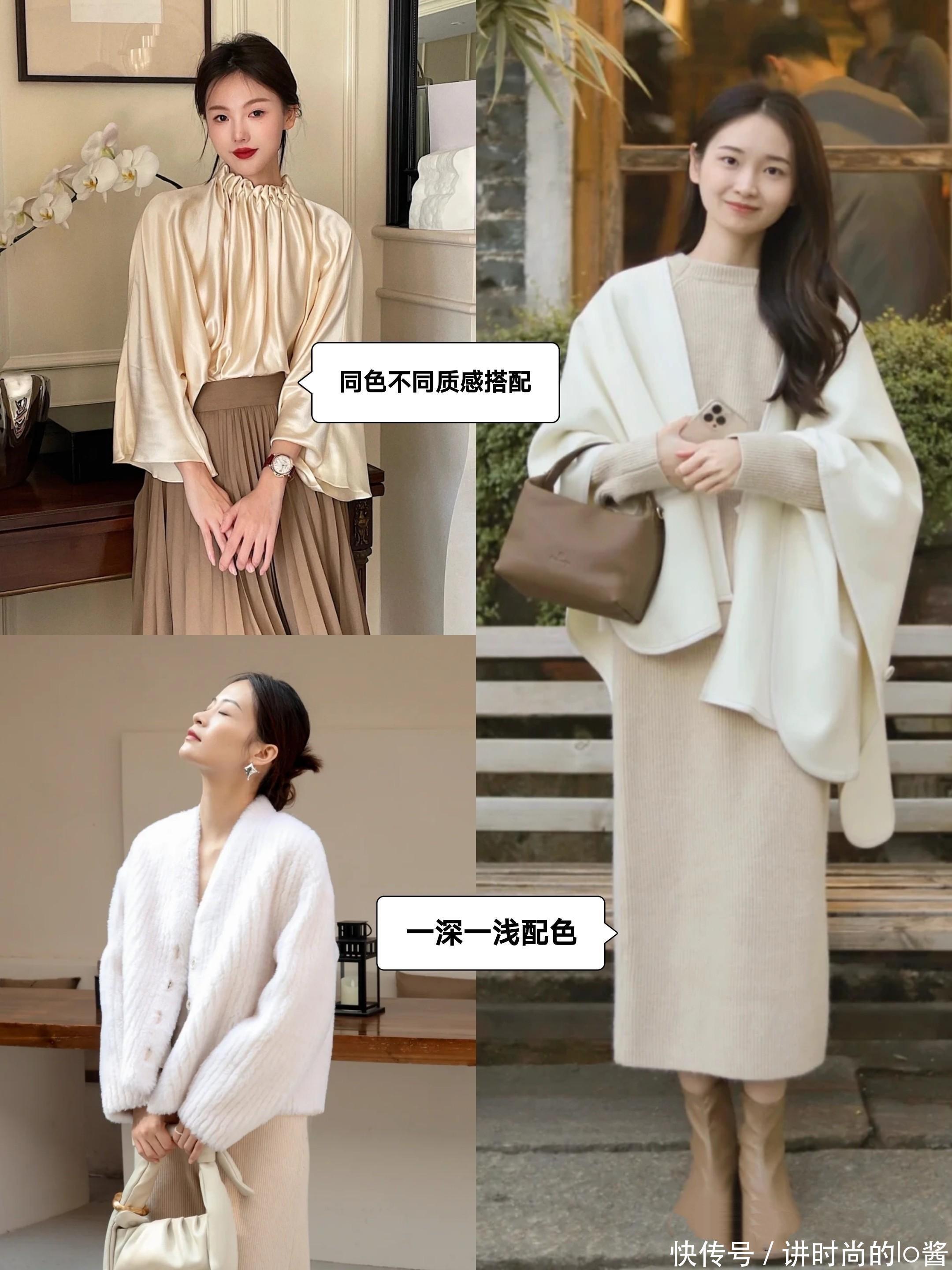 其实贵妇色的挑选并不多,我们只需要围绕着贵妇感去选择,就能够成功的缩小范围。相比起过于休闲的冷白色,更推荐大家选择偏暖调的米色,穿在身上十分温柔贵气,而且还能有效的衬托肤色。