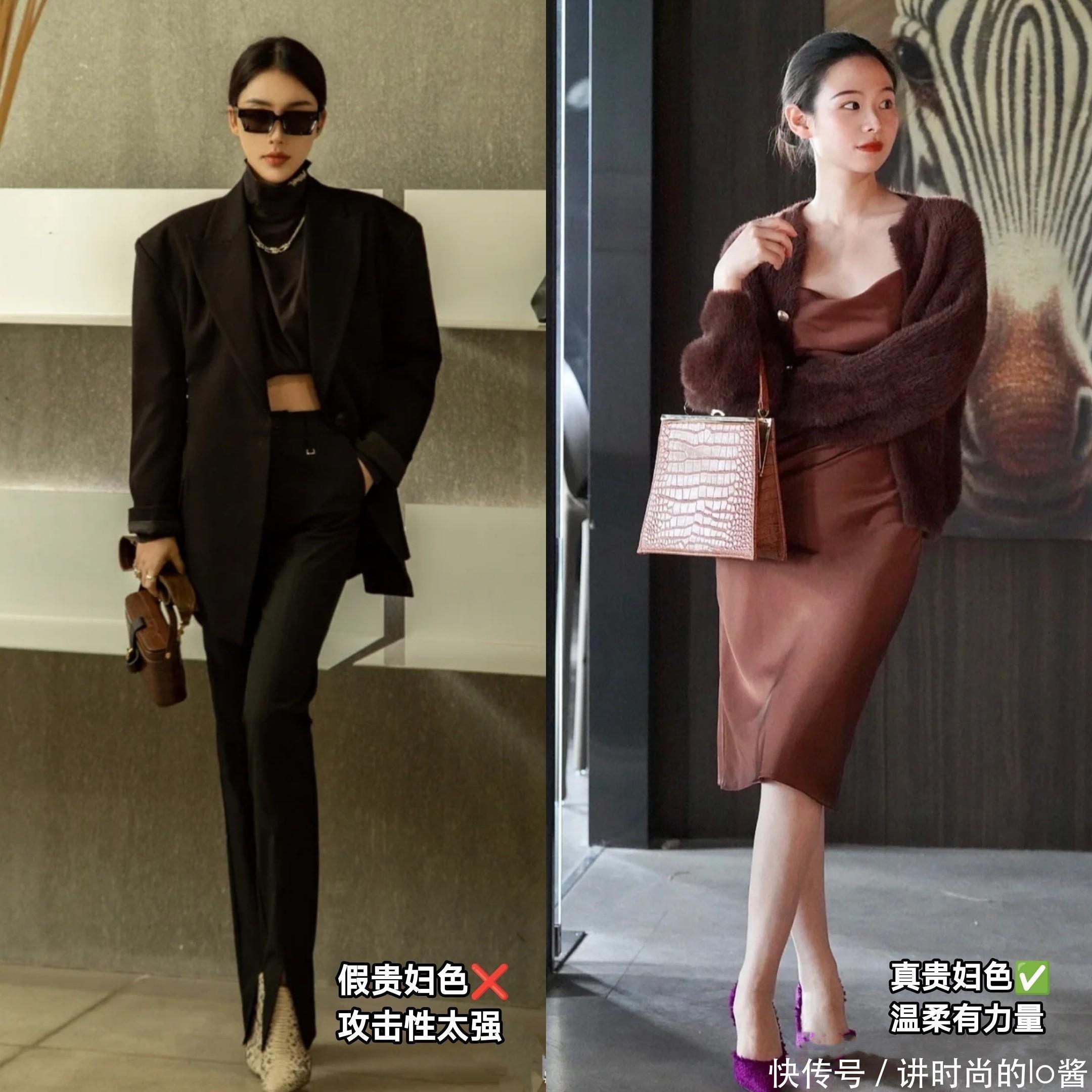 贵妇色的挑选也分真假,假贵肤色一般攻击性都特别强,会给人带来特别生硬死板的感觉。相比之下,真正的贵妇色,温柔又透露着一丝力量感,用于高质感的服装当中是很惊艳的。