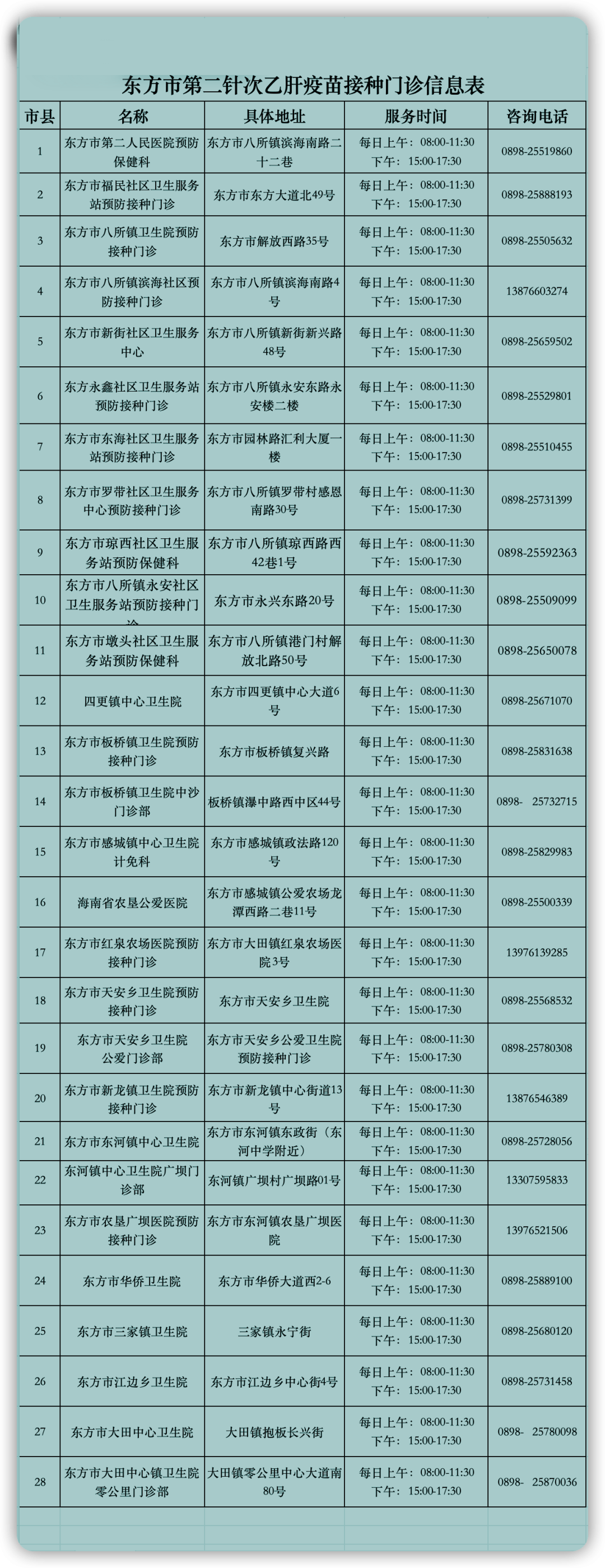 东方市卫生健康委员会关于开展省级为民办实事项目-乙肝疫苗免费接种第二针次接种工作的公告