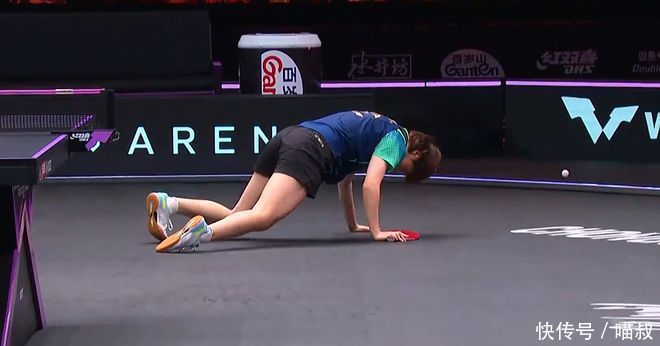 但就这个动作,王曼昱就已经很努力了。另外在输掉比赛的时候,还可以看到王曼昱的一个动作,同样是俯冲救球,孙颖莎在振臂狂呼,王曼昱已经是整个人趴在地上了。很少见到王曼昱为了救球,居然还有这种疯狂动作,现在这动作一出来,我们更是能够感觉到,王曼昱真的太想赢了。