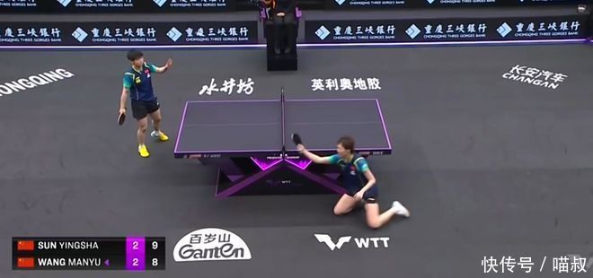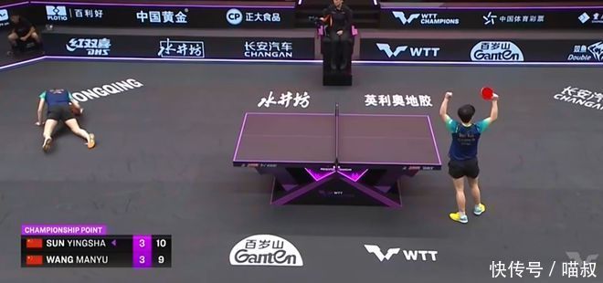 首先本场比赛。双方打到2:2平天王山之战的时候,孙颖莎有一个运气非常好的擦网球,而这个球王曼昱为了救球,整个人直接是滑跪,拼到了双膝跪地。她为了救球已经双膝跪地,当时孙颖莎还在举手示意这个球是个擦边,但是就是这个运气球,运气就站在了孙颖莎这边,王曼昱真的没有办法。