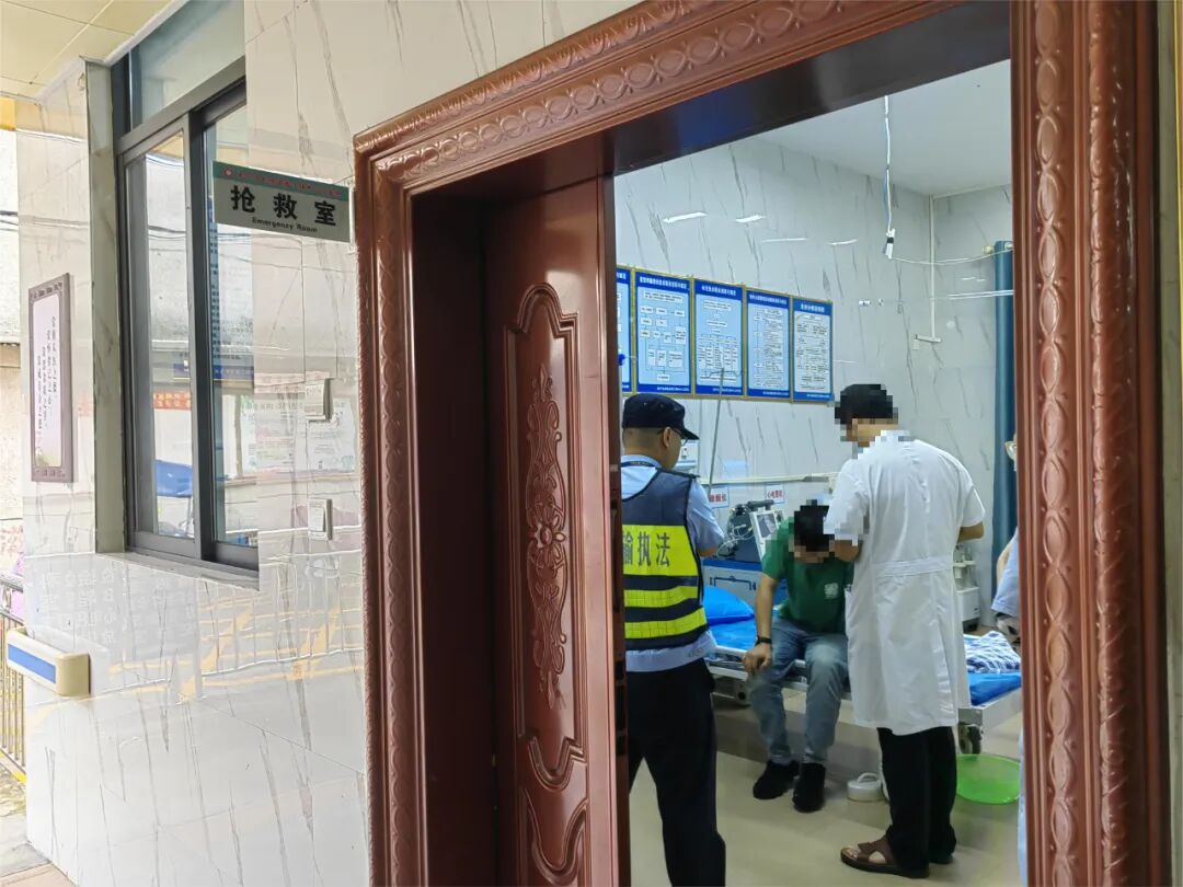 由于腹痛难忍,该男子说完便瘫软倒地。执法人员立即将该男子扶上其车后座,执法人员发现该男子腹痛并伴有呕吐症状,脸色发青,已出现意识不清的情况,立即驾驶该男子的车辆将其送往距事发地最近的两江镇卫生院。由于两江镇卫生院距离事发地近15公里,为确保该男子平安,一路上执法人员时刻关注着男子的状况,避免二次受伤,并由另一组执法人员驾驶执法车辆保驾护航,该过程仅用时13分钟。