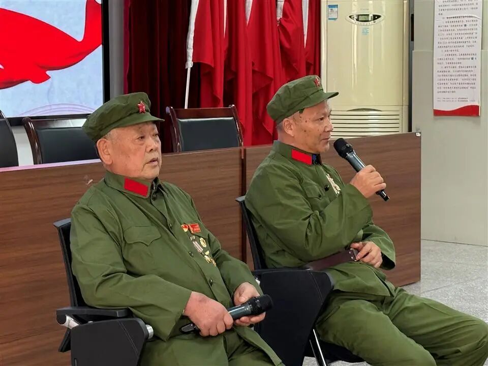 当天,两位退伍老兵受邀来到现场,淳朴的话语、真挚的情感,讲述了他们光辉的战斗故事。老一辈军人奋不顾身、勇往直前的革命精神也让在场人员触动颇深。随后,小朋友用他们充满朝气的表演,向老兵们表达了崇高的敬意,并在表演结束后,为老兵送上了绘画作品和鲜花。