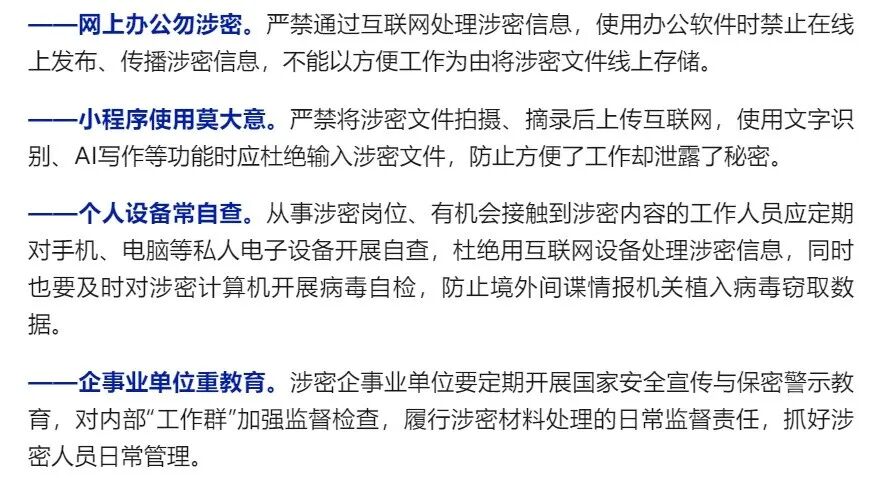 这些群聊中的涉密信息极易被群成员转载甚至对外公开,无法控制知悉范围。境外间谍情报机关还能通过网络攻击获取重点工作群组的聊天记录,存在极大失泄密隐患。