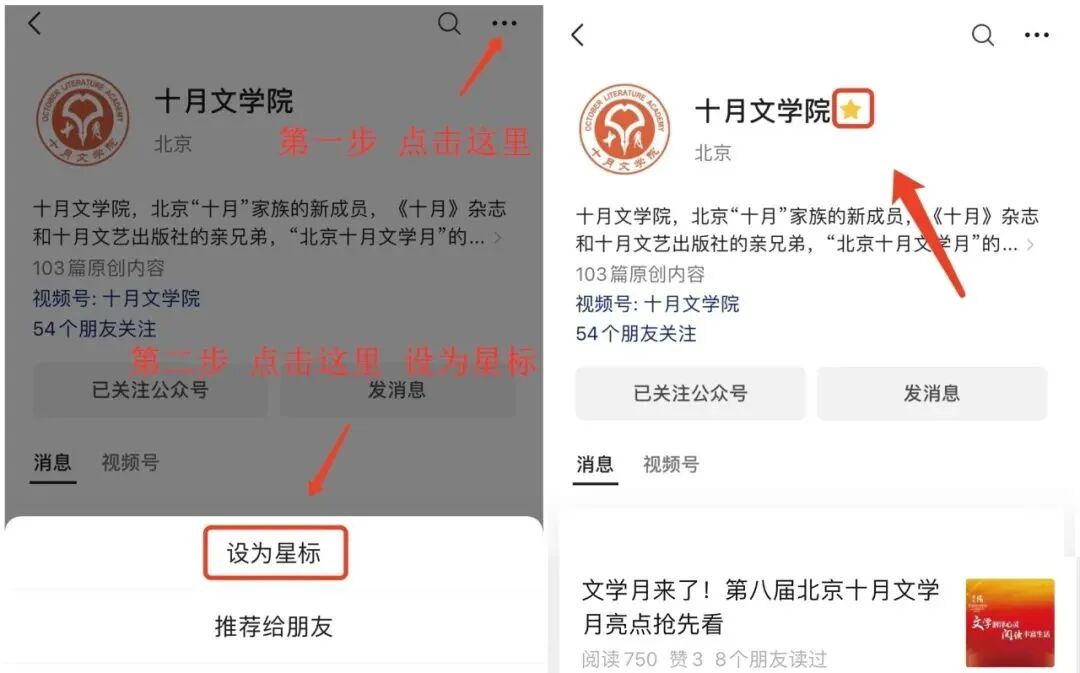 由于微信公众号修改了推送规则,部分关注本号的朋友无法在第一时间收到“十月文学院”公号推送的消息。欢迎各位朋友关注“十月文学院”,加⭐星标⭐不迷路。步骤如下: