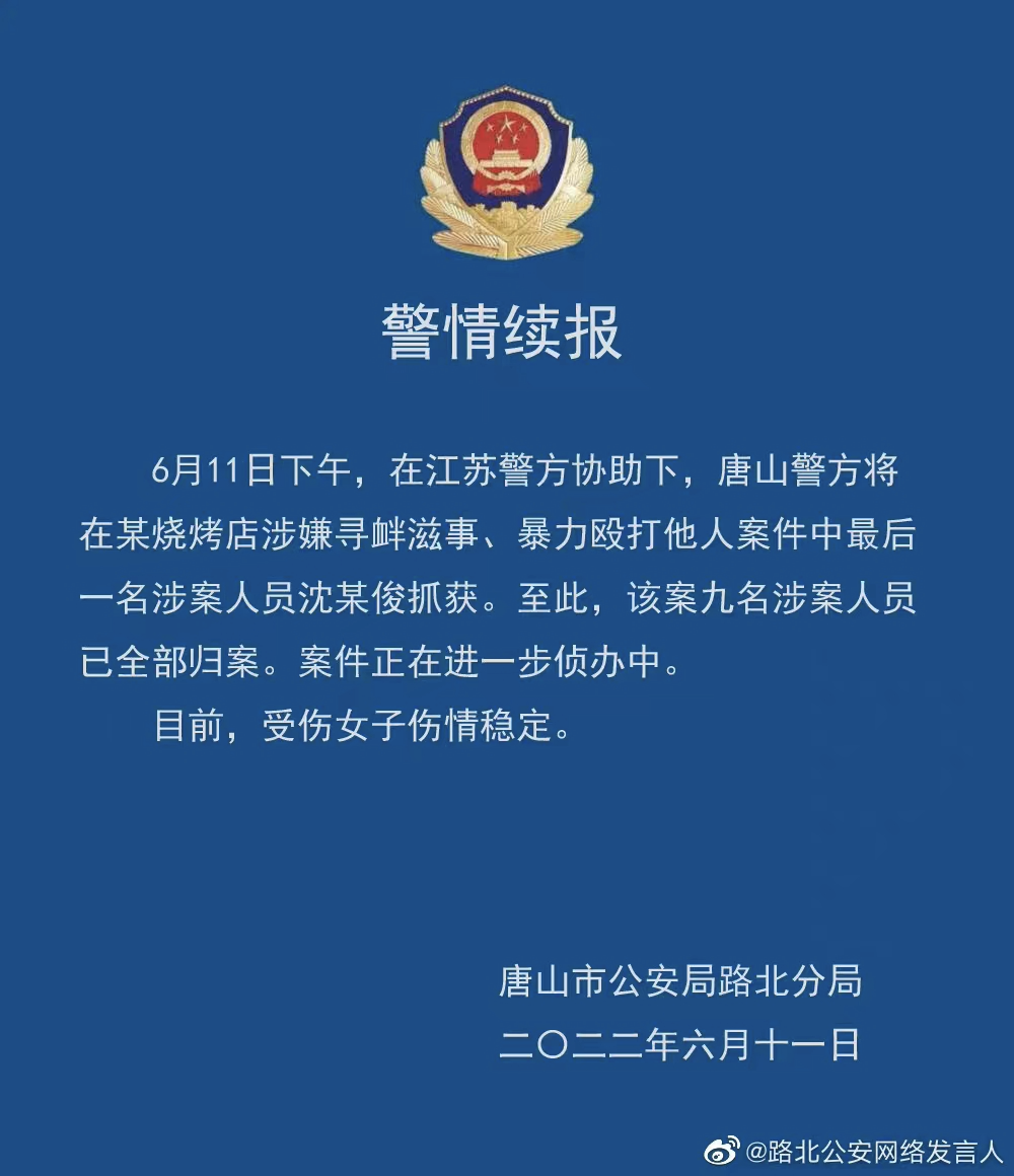事情发生在6月10日凌晨2点40多,唐山某烧烤店。