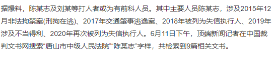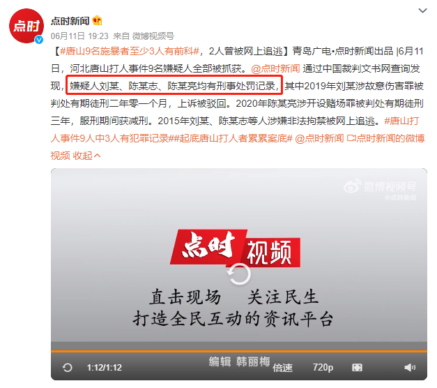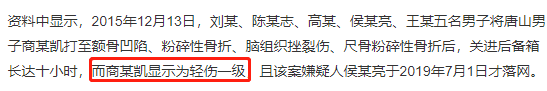 因为经调查发现,这几个人虽然前科累累、恶贯满盈,但却活得相当逍遥自在。@点时新闻 通过查询资料发现,包括主犯陈某志在内,9名嫌犯中至少有3人有前科。光是主犯陈某志,就涉及多项指控,包括不限于经济、暴力、民事等多种类犯罪。资料显示,2015年12月13日,刘某、陈某志(这两人也是这次烧烤店暴行的主犯)、高某、侯某亮、王某五名男子将唐山男子商某凯打至额骨凹陷、粉碎性骨折、脑组织挫裂伤、尺骨粉碎性骨折后,关进后备箱长达十小时。哪怕只看这一个案子,就不难看出这伙人是典型的黑恶势力。被打至浑身多处骨折的受害人仅被评定为“轻伤一级”;主犯刘某,在2015年犯下暴行后,直到2018年驾车肇事并逃逸后才被拘留,并且因为当庭认罪就从宽,只被判了两年零一个月;陈某志在文书中被标记为“刑拘在逃”,可他却几乎每年都能搞出犯罪新花样,甚至还曾为刘某肇事逃逸起诉。难怪这伙人在烧烤店施暴时可以如此嚣张,原来此前都是法网外的“隐形人”。