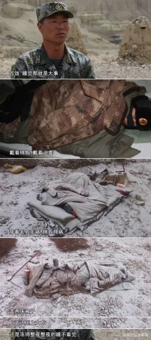 而祁发宝蹲守的执勤点靠近中印边界线,更为艰苦。海拔超过5500米,极度严寒、缺氧,冬天更冷,戴着棉帽、头套,穿着毛衣毛裤、棉衣棉裤,盖两床杯子被子,压着大衣,仍旧整晚整晚睡不着觉。